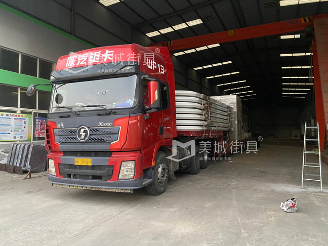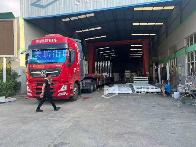 江蘇美城街具為新疆定制公交候車亭第五車發貨案例